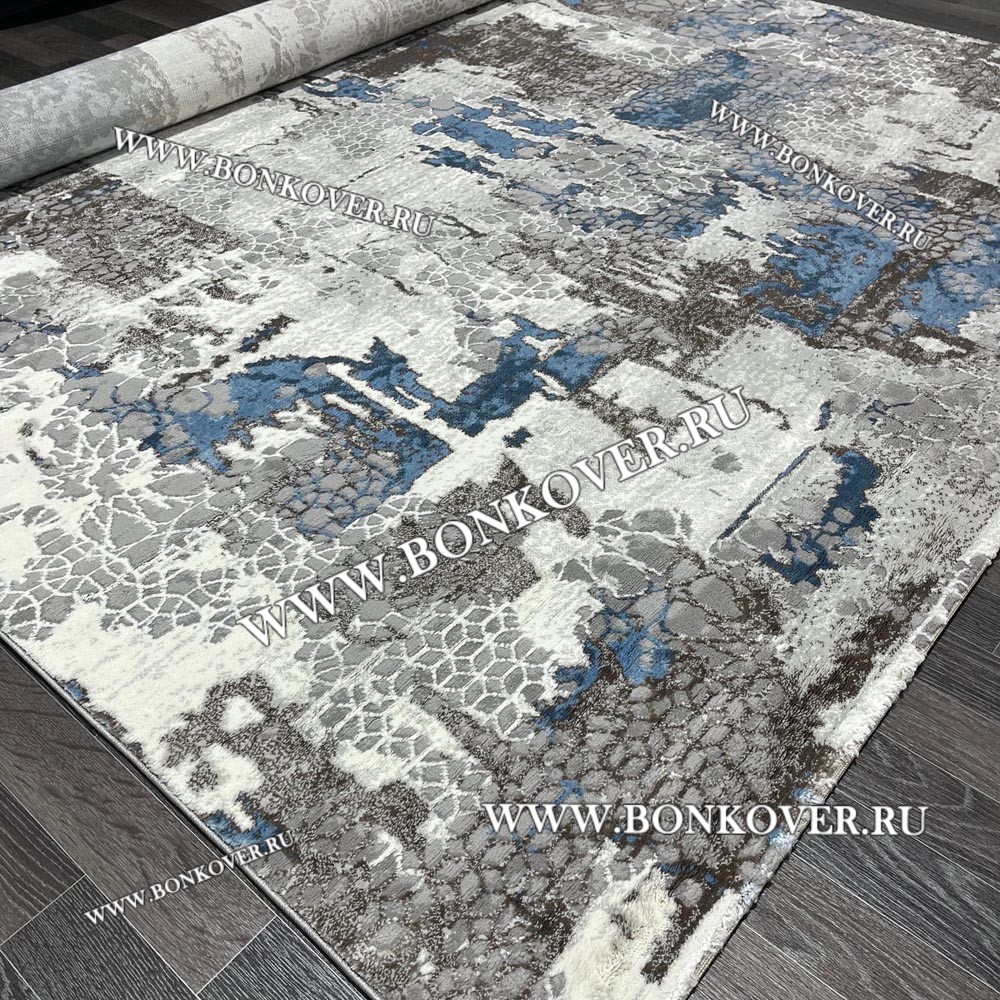 Импозантный Турецкий Ковер Для Гостиной Дизайн 25 Синий с Серым Прямоугольный наполняет интерьер жилого пространства теплом и уютом, гармонично сочетает в себе изящество и стиль. Он выполнен из современных материалов, комфортный и долговечный.